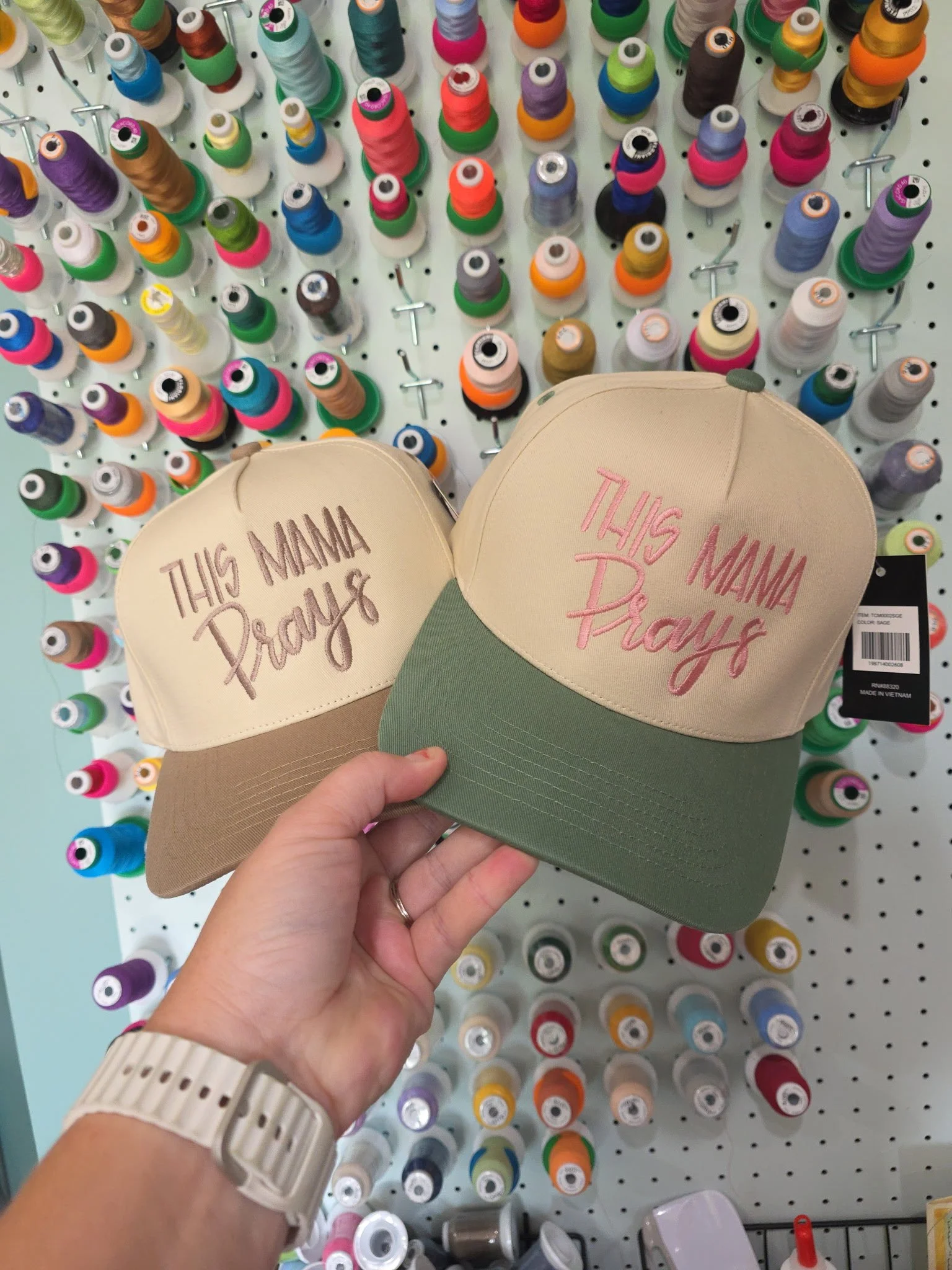 Please select your hat color and thread color! Tone on tone with match the thread to the brim of the hat color selected.