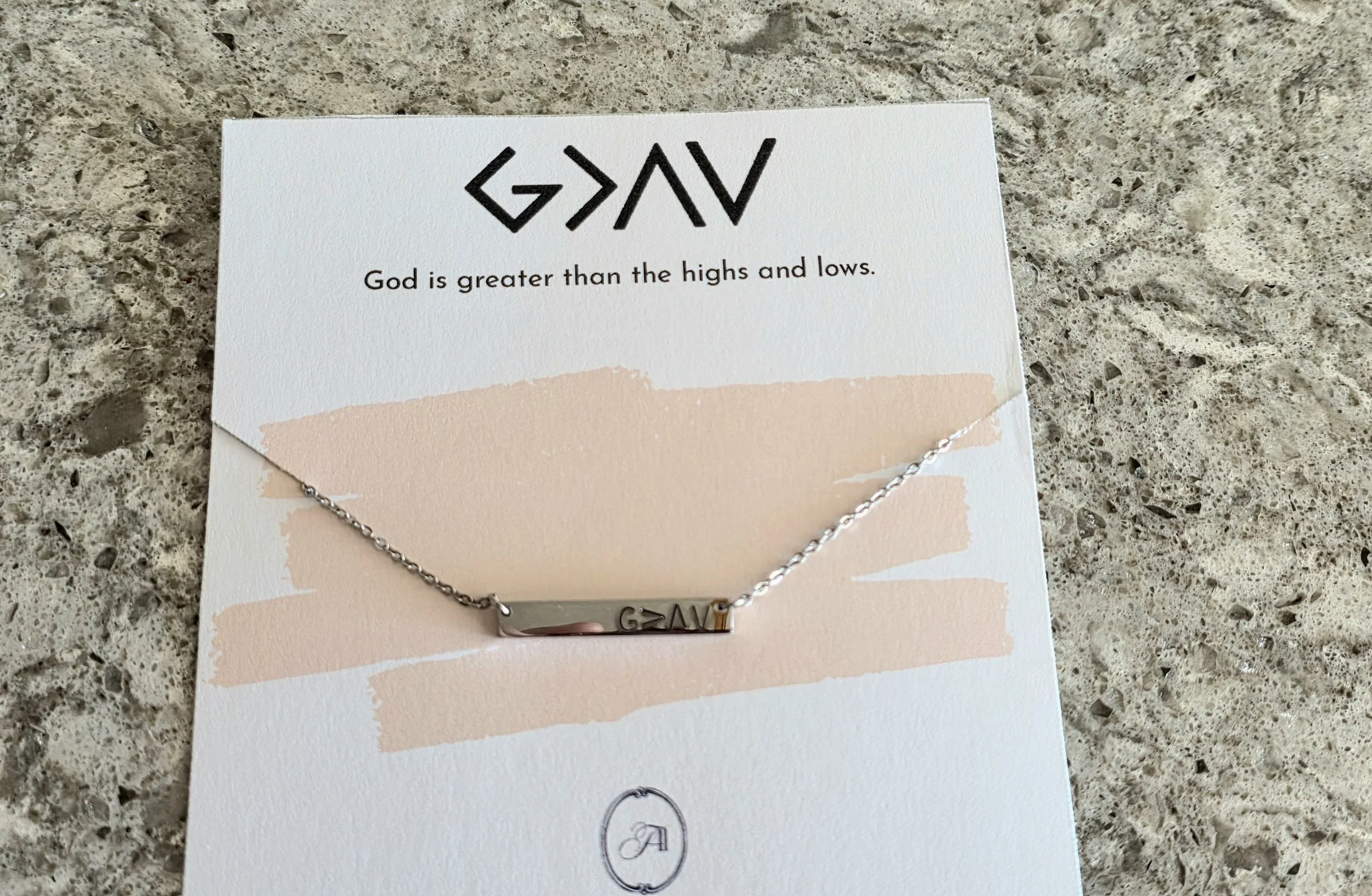 Shop › God is Greater than the Highs and Lows Handstamped Necklace Image 1 of 3 Image 2 of 3 Image 3 of 3 God is Greater than the Highs and Lows Handstamped Necklace $28.00 Stainless Steal Hypoallergenic Handstamped Necklace Does not Tarnish Add To Cart Added! Stainless Steal Hypoallergenic Handstamped Necklace Does not Tarnish