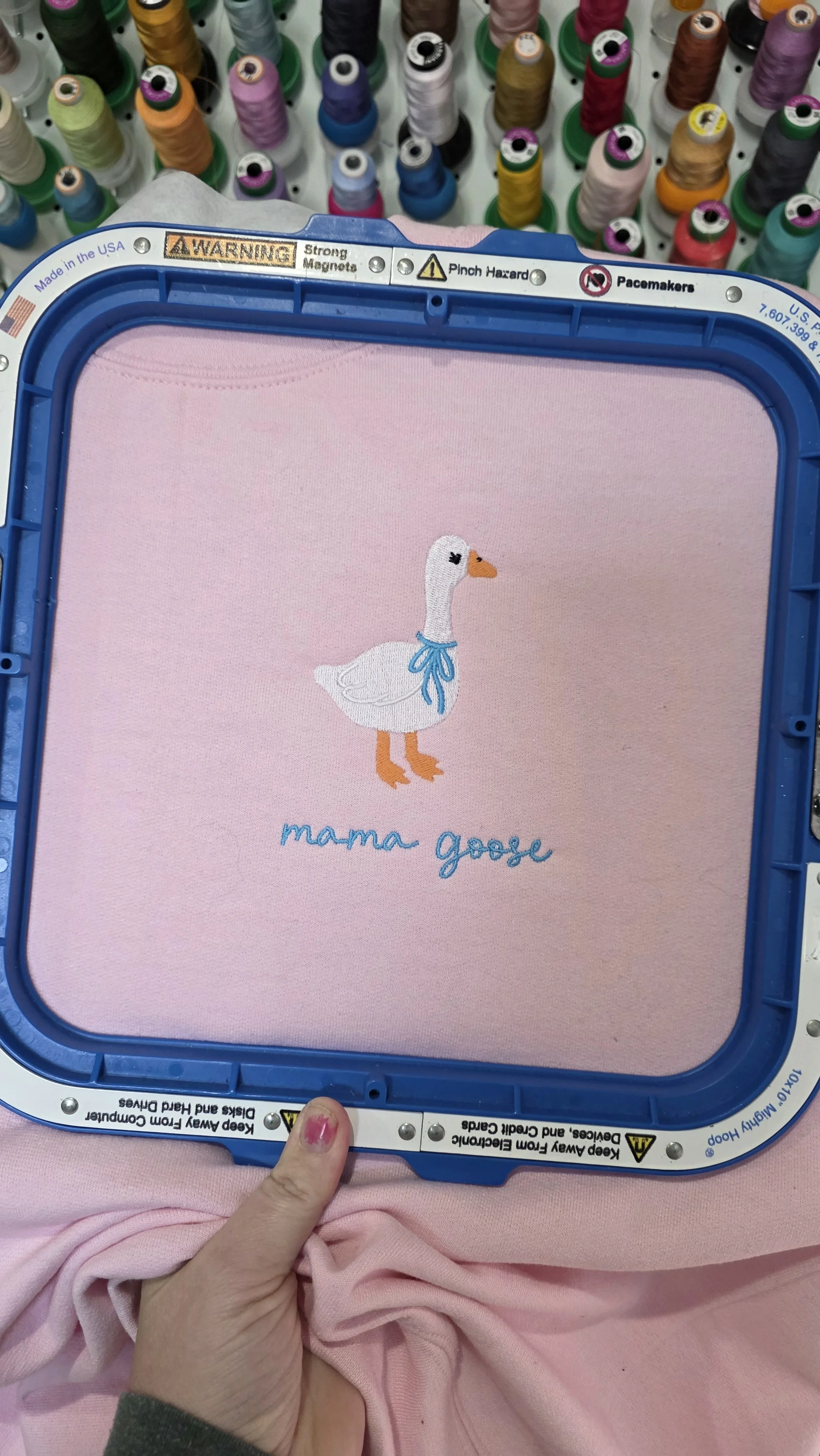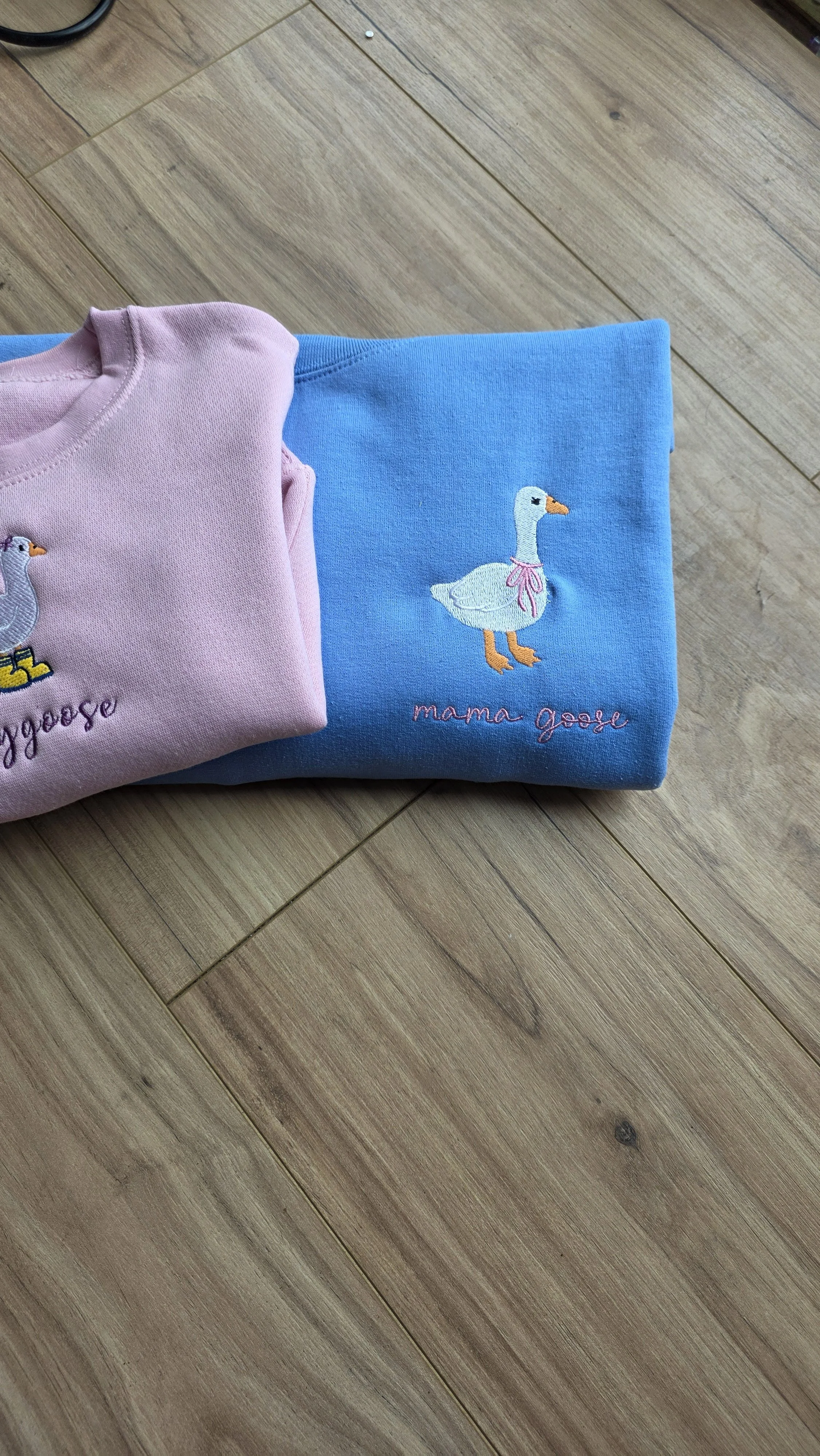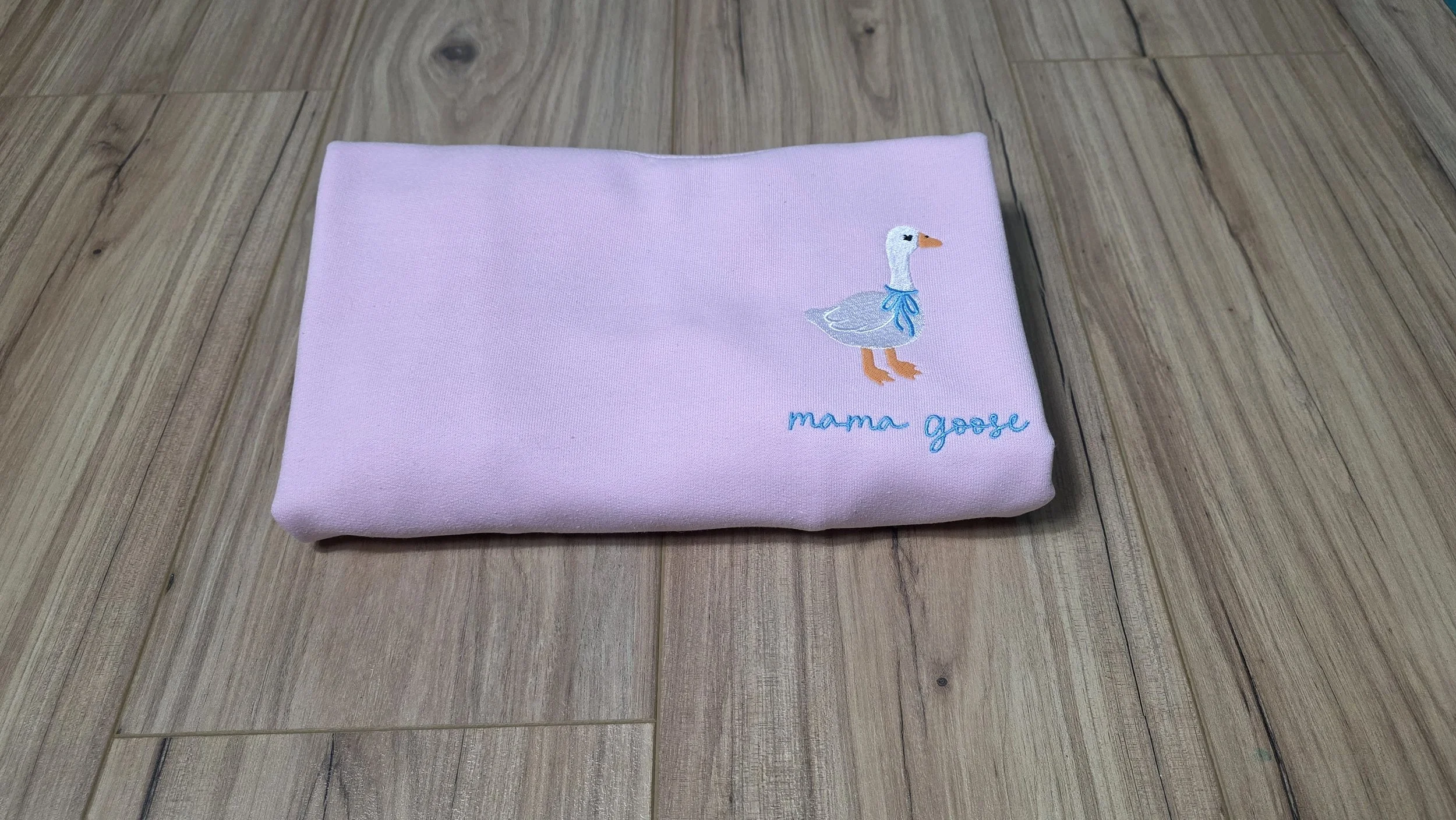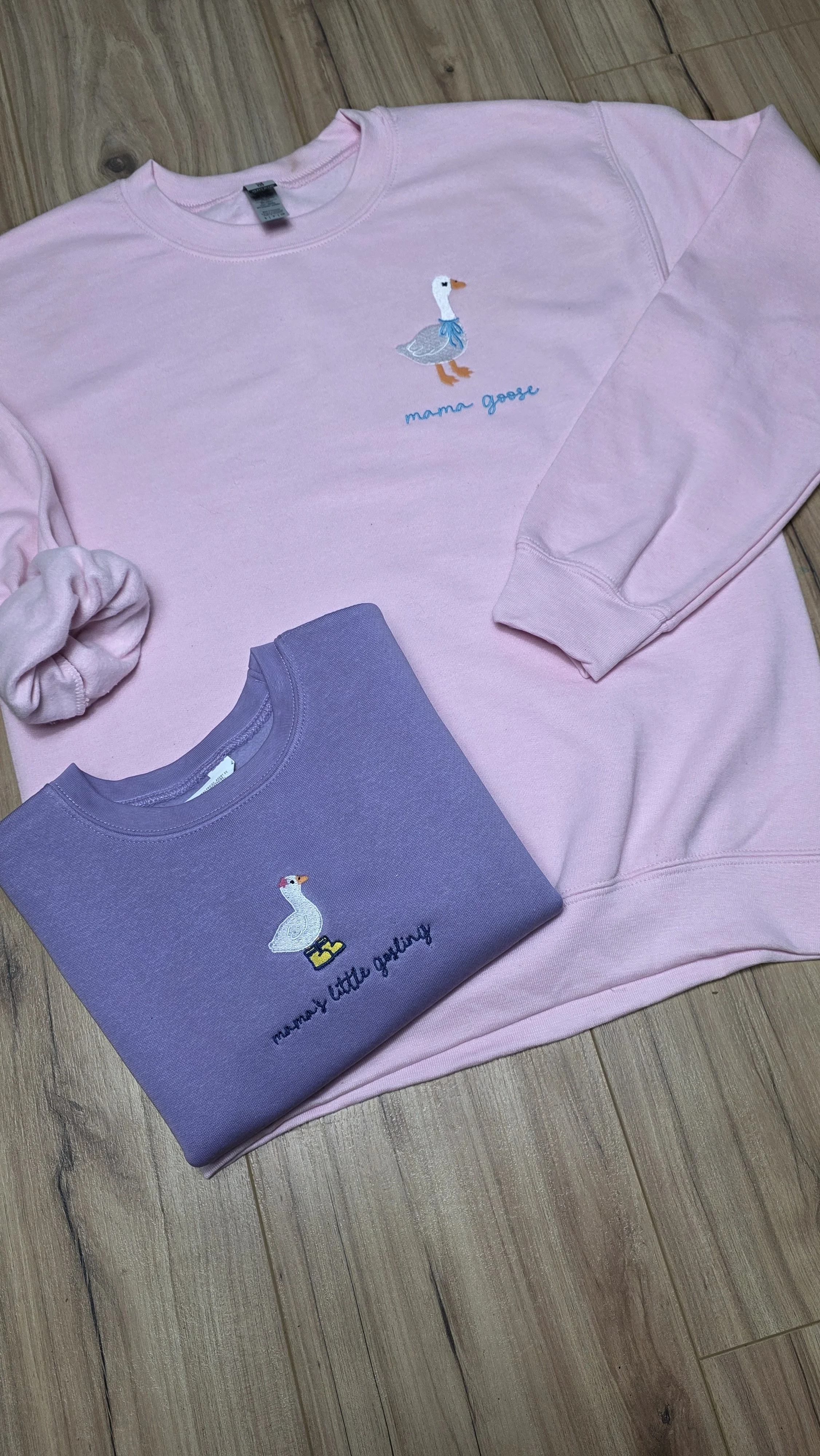 Mama Goose Crewneck with customizable thread options. Please select your thread color for Mama Goose and matching bow.